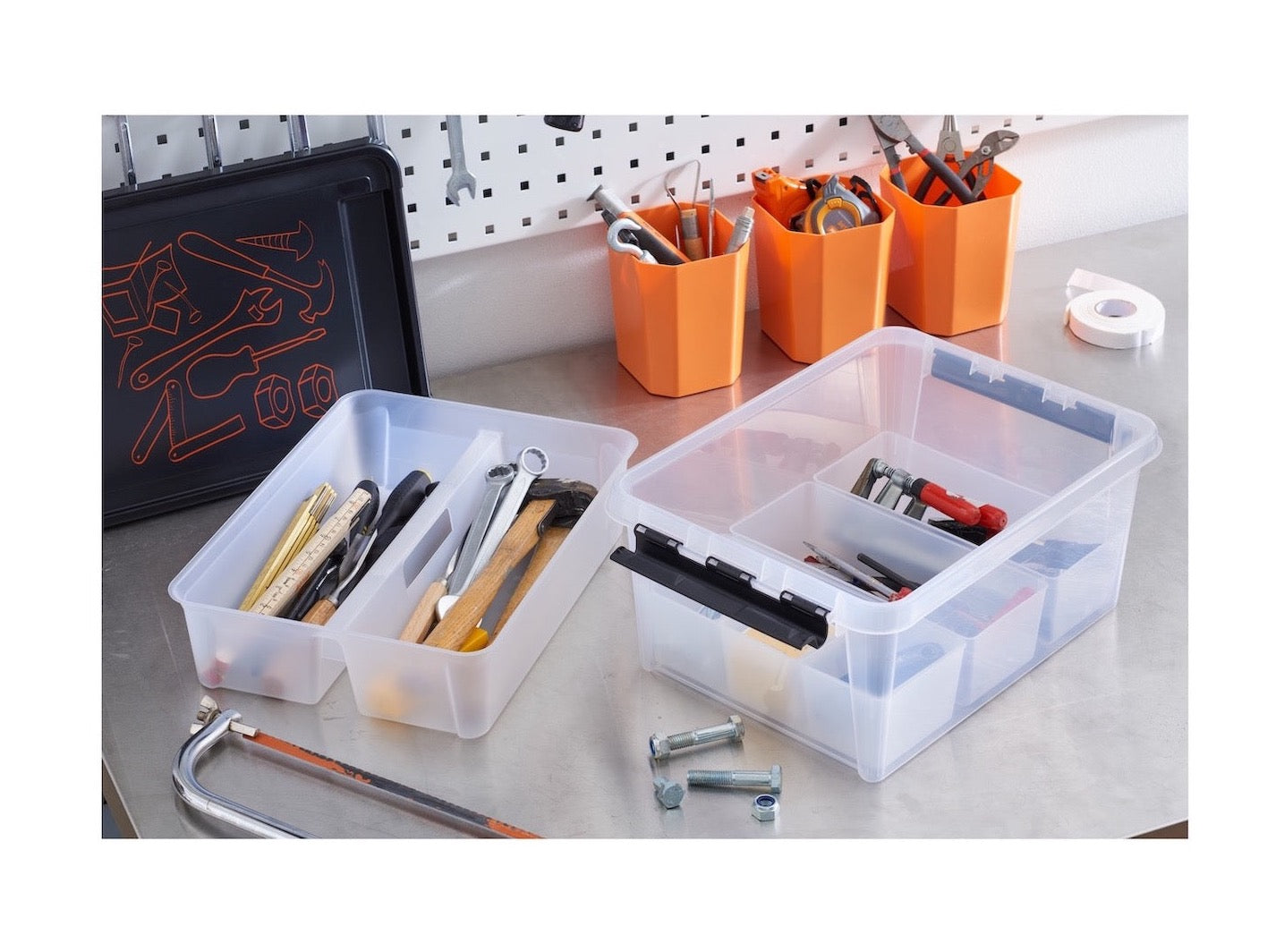 This storage container is a practical solution for organizing tools and small items. It features a see – through base for easy visibility of contents and a well – designed lid, making it ideal for both home and workshop use. Its durable construction ensures long – term use.