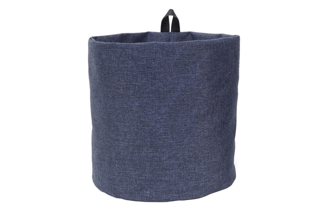 The basket is crafted from a textured, woven fabric, likely a blend of cotton and/or synthetic fibers, which provides both durability and softness. The fabric has a thick, uniform weave, resistant to wear and tear, and a heathered or “melange” texture with subtle color variations, giving it a soft and textured look. The solid, dark blue color is complemented by dual black handles made of a sturdy black fabric or leather – like material, reinforced for easy lifting and carrying. The contrast between the blue body and black handles ensures high visibility and user – friendly handling.