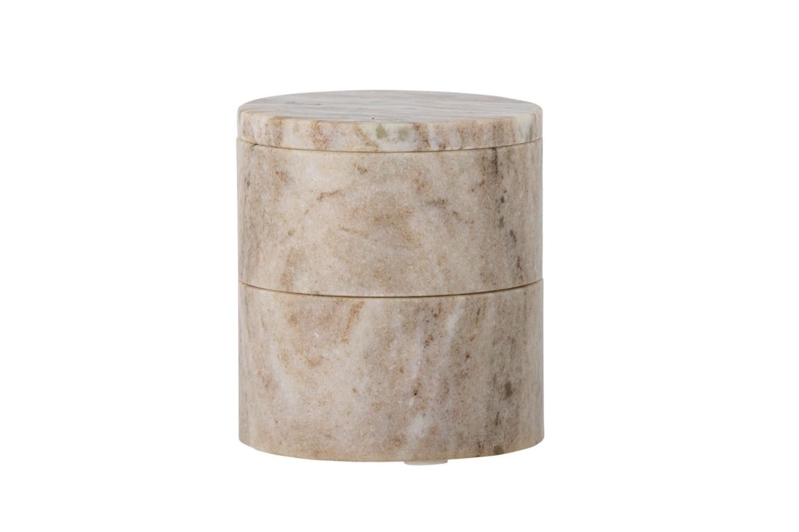 With a nested/separable design, it consists of a lid and two inner chambers, allowing for stacked storage or separate access to compartments. This makes it ideal for storing small, delicate items such as jewelry, rings, earrings, or keepsakes. It can be used to organize your vanity or dressing table, serve as an accent piece on a shelf, or even for dry storage in the kitchen (though marble is less practical for wet items).
