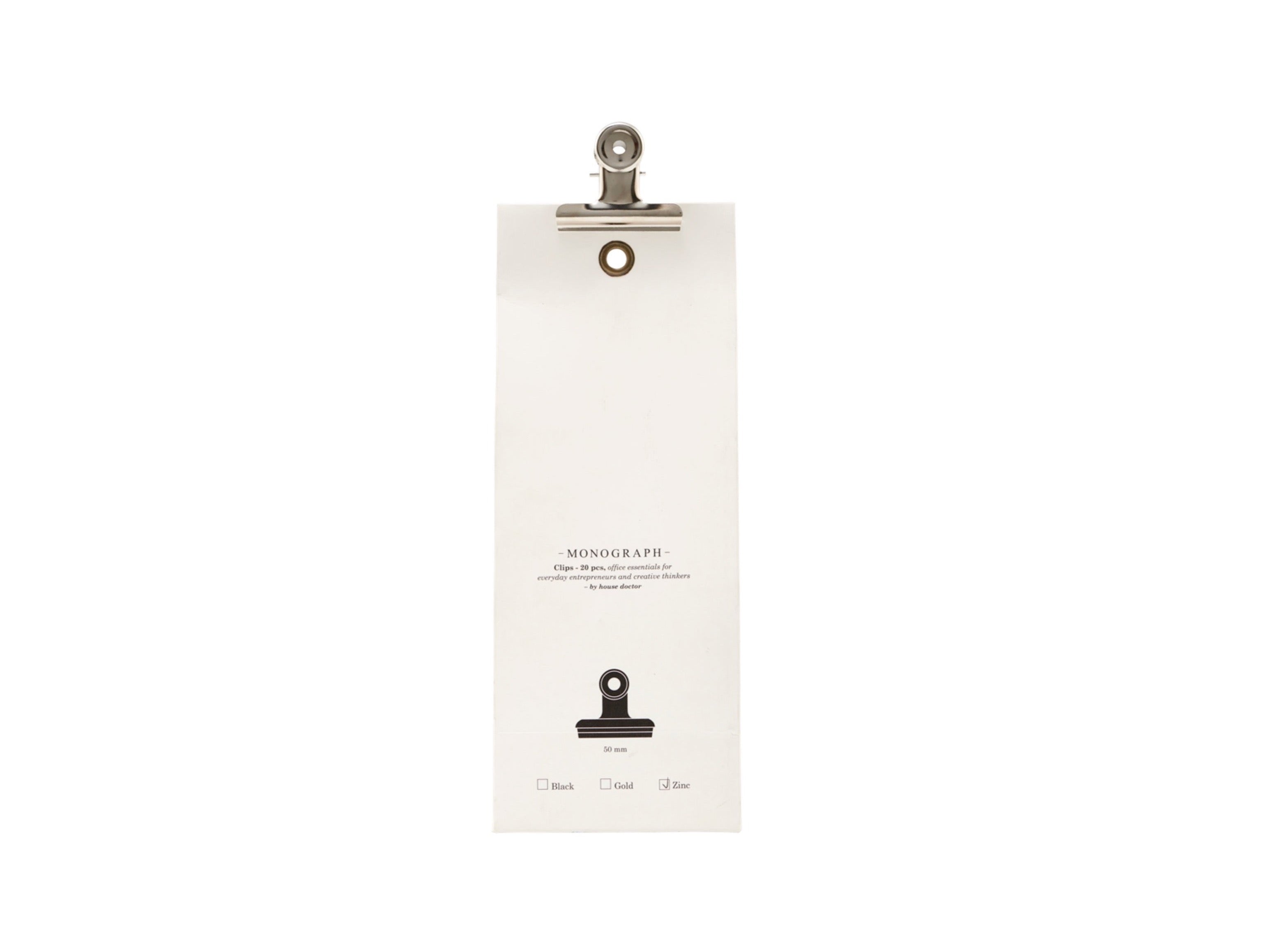 - Design: Classic binder clip design with flat, rectangular jaws and a central loop at the top