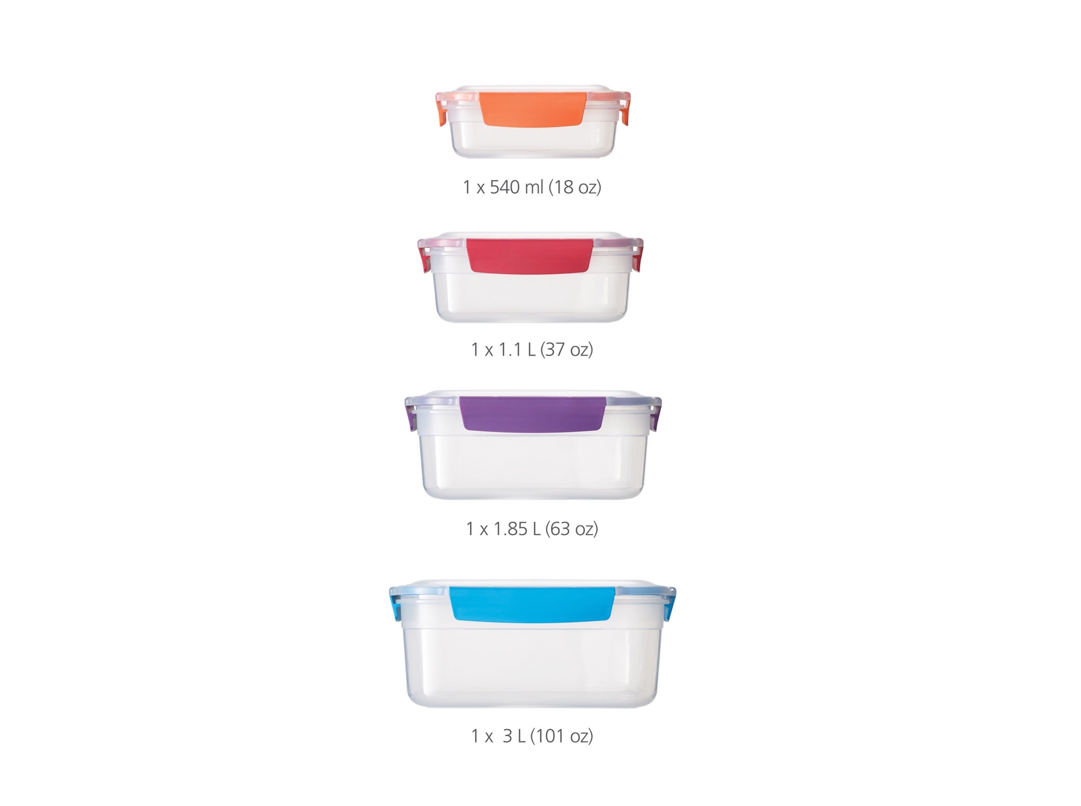 - Color – Coding: The lids have vibrant color – coded tabs (orange, red, purple, blue) for easy size identification.