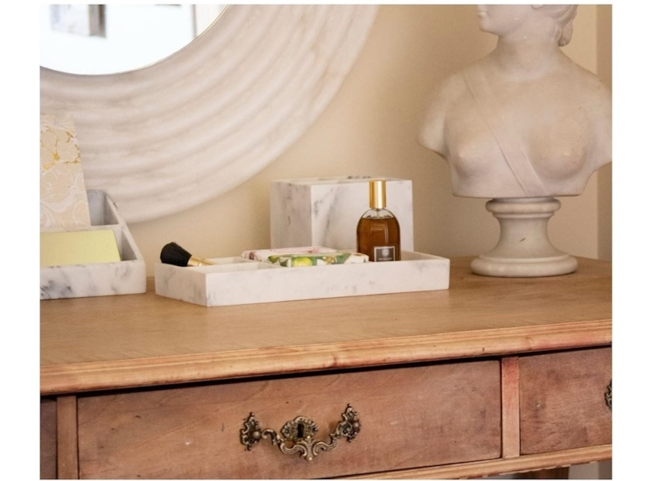Crafted from natural white marble with beautiful gray veining, this organizer showcases the natural beauty of the stone. The surface is smooth and polished, giving it a high – quality finish typical of decorative stone products. Its clean, sharp edges and minimalist, modern design make it a stylish addition to any space.