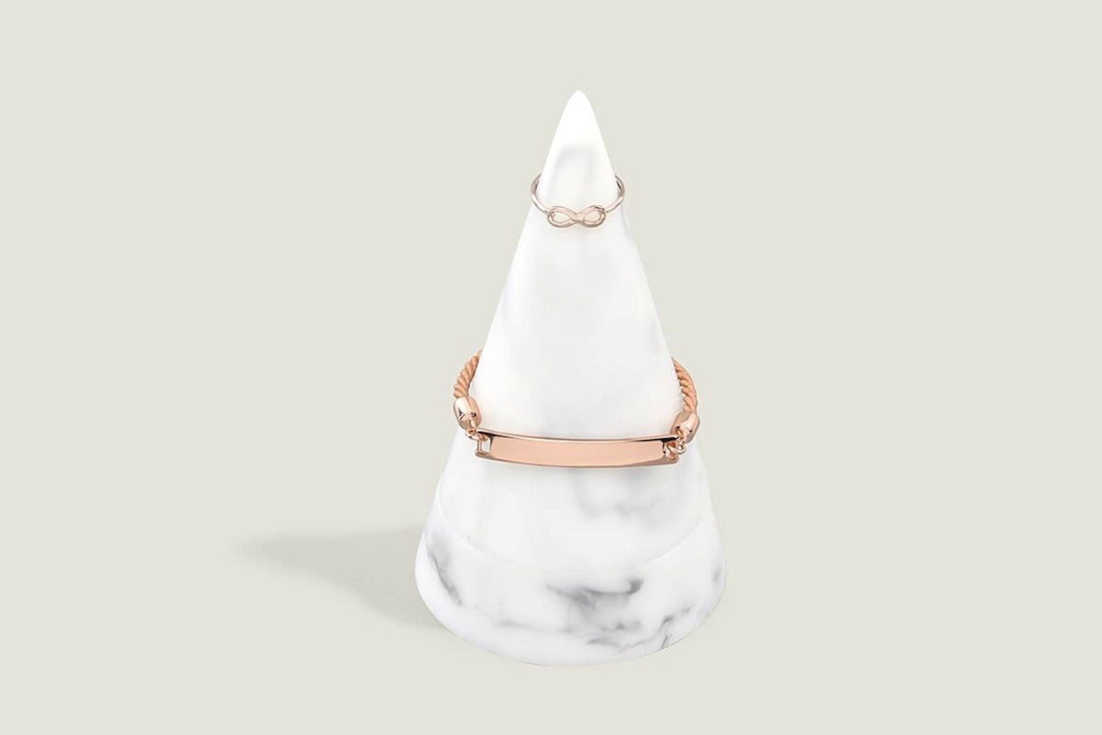 - Conical Design: Features a conical upper section for holding rings, bracelets, and watches, and a base bowl for small jewelry items.