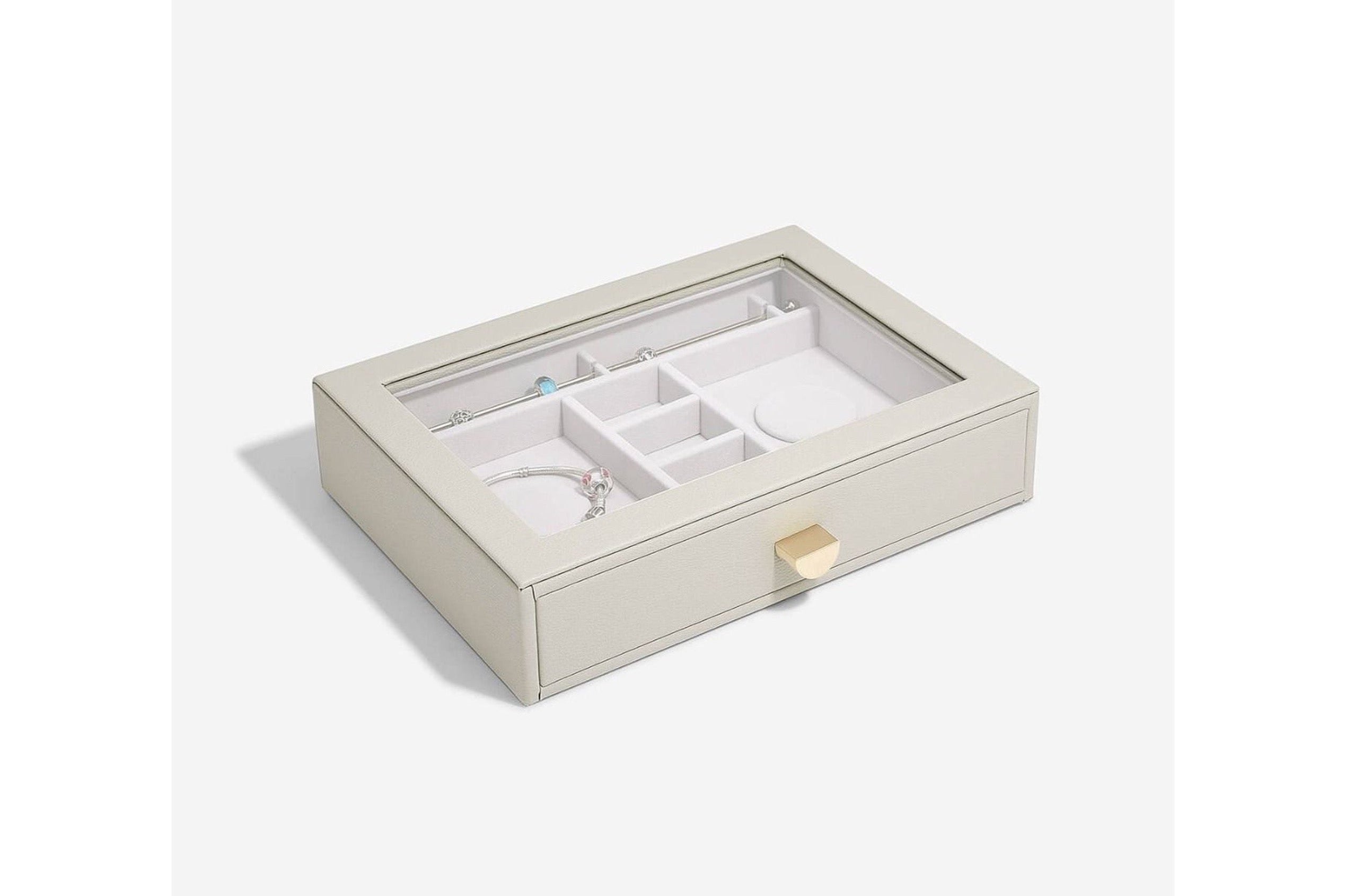 - Clear Top Panel: Hinged or fixed transparent cover (glass/plastic) to display jewelry without opening the box