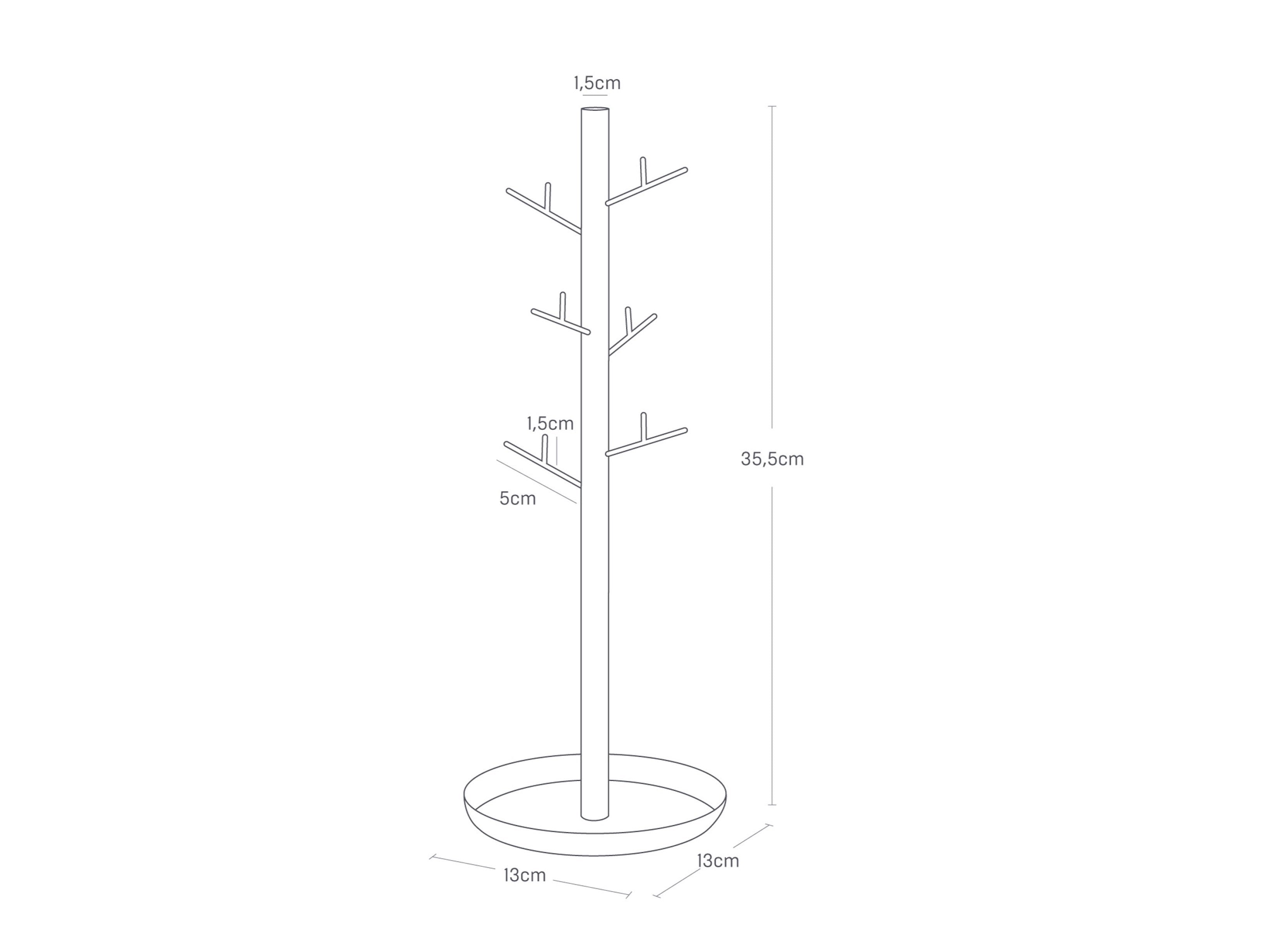 - Design: Minimalist, modern aesthetic with clean lines and evenly spaced branch hooks