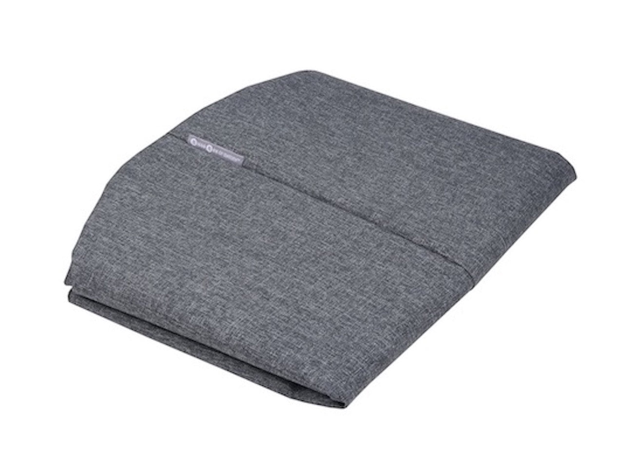 - Main Body: Heathered gray fabric cylinder with reinforced stitching