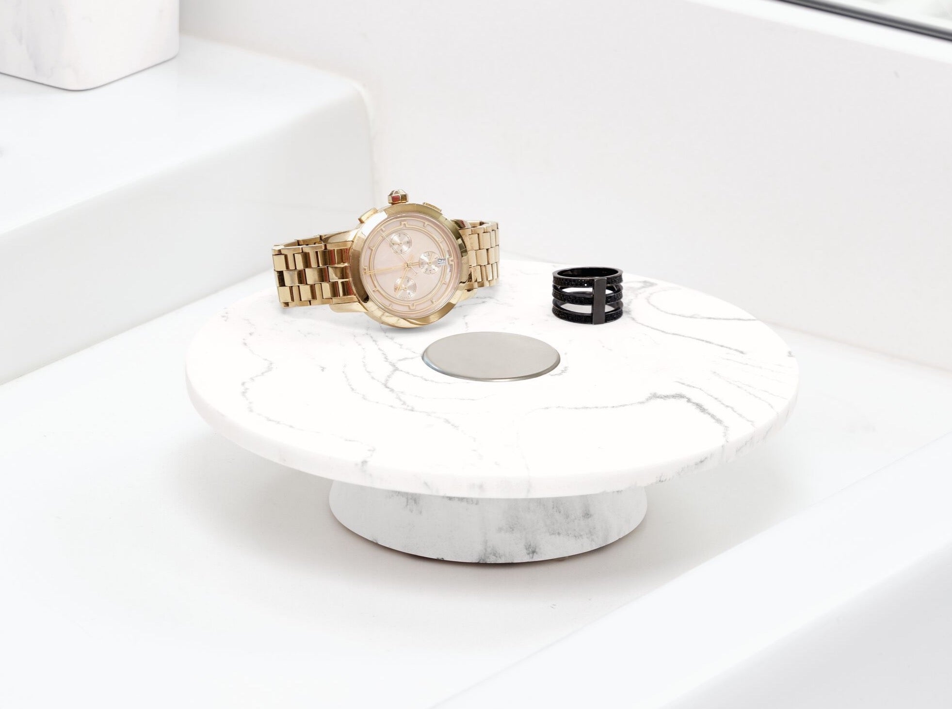 The pedestal base matches the marble – effect material, ensuring stability and a cohesive design. Its smooth, polished finish is not only easy to clean but also prevents scratches on the items you store on it. With a diameter of 7 inches (18 cm) and a height of 1.5 inches (4 cm), it has a compact size that is smaller than a typical dinner plate, making it ideal for countertop use without cluttering the space.