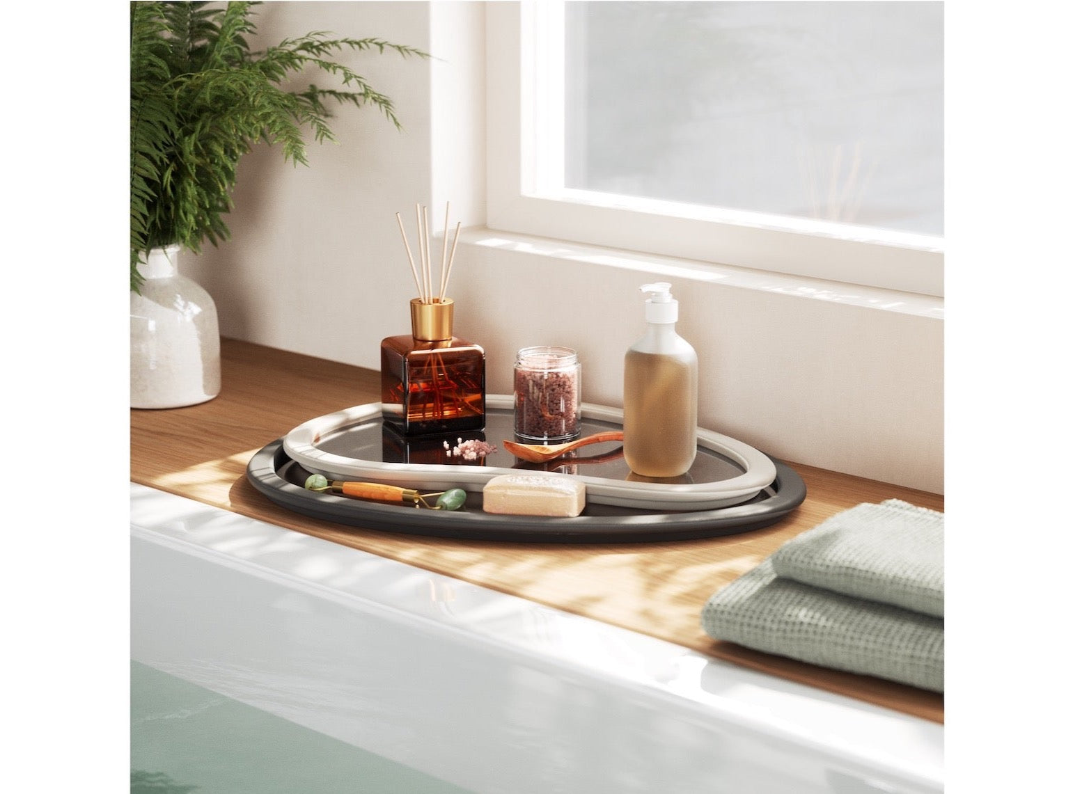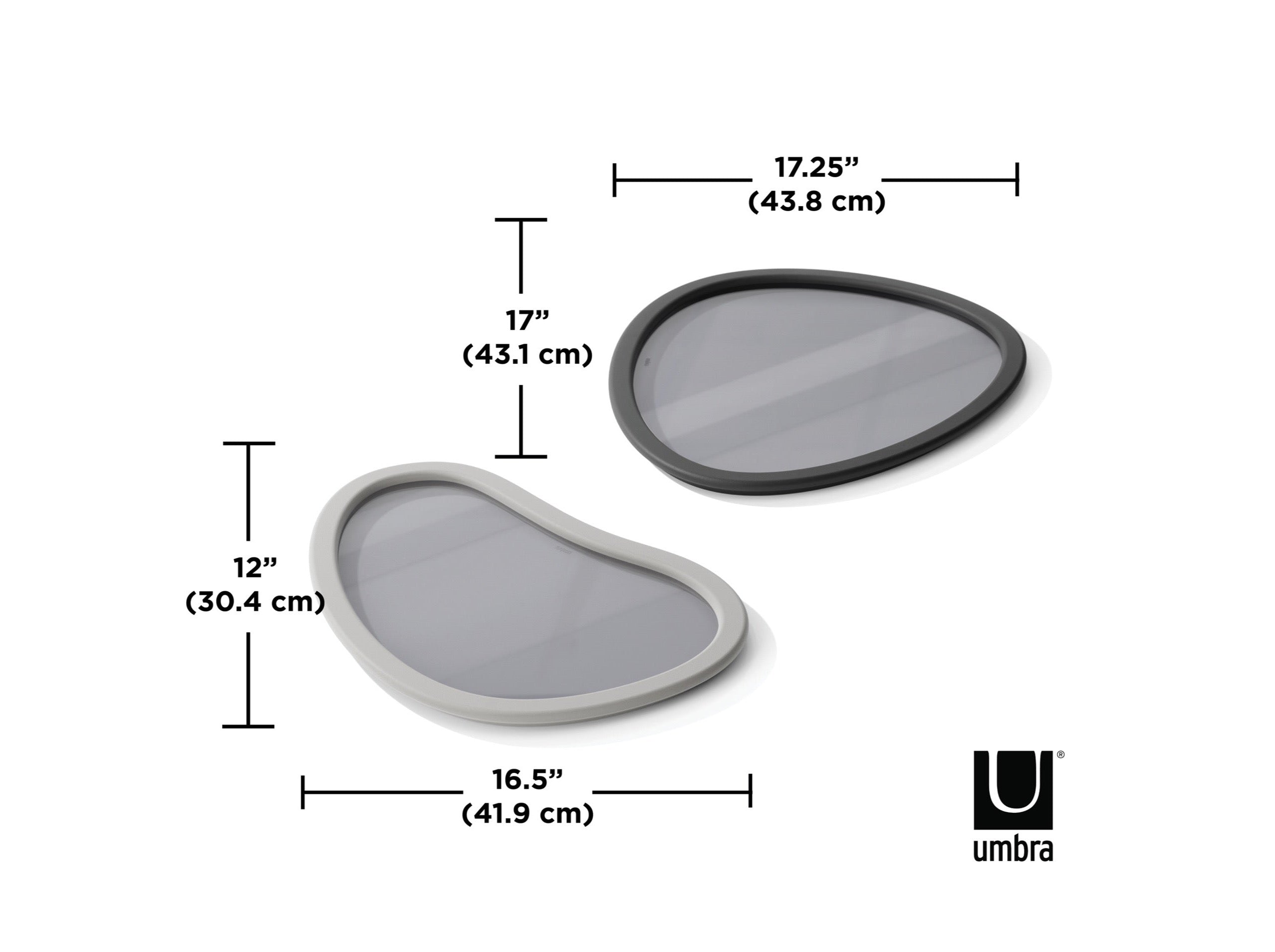 | Color | Larger tray: Dark gray outer rim and reflective inner surface (shades of gray/black); Smaller tray: Light gray outer rim and matching reflective inner surface (shades of light gray/white) |