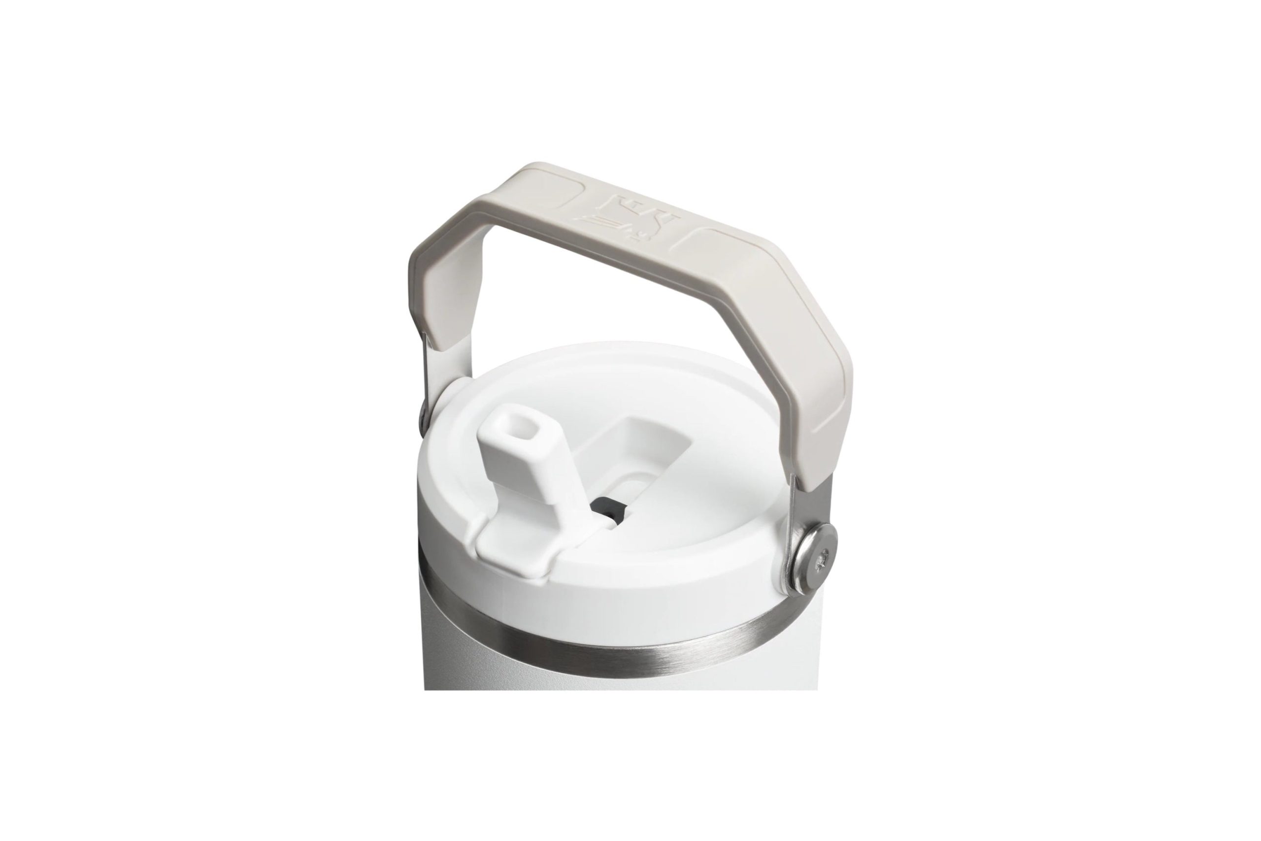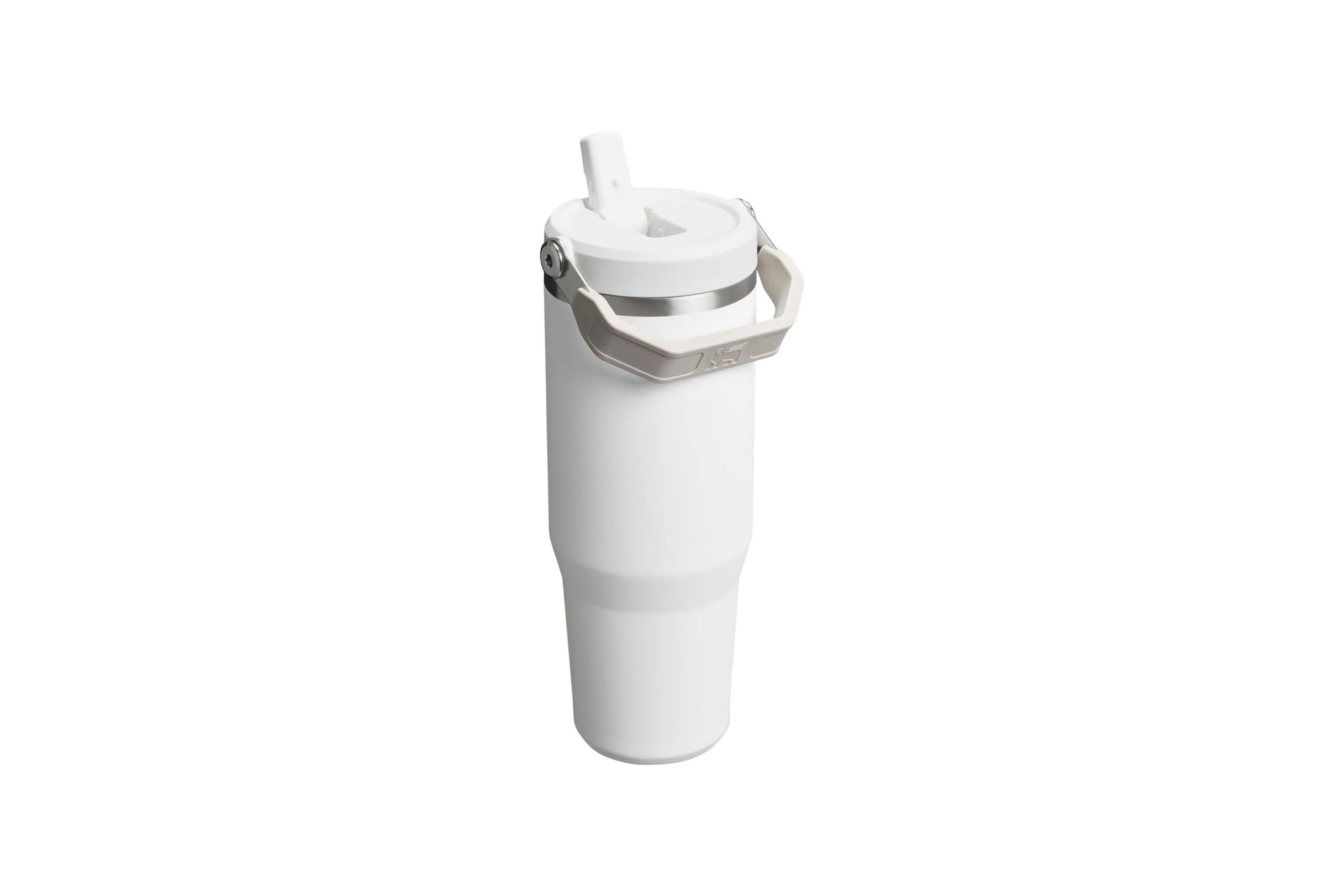 With a matte white primary color, this tumbler has a smooth, non – glossy finish. The light gray/beige handle, metallic silver band around the lid, and white plastic components create an aesthetically pleasing combination. The subtle gray “STANLEY” text and iconic griffin logo on the side maintain a minimalist and clean look.