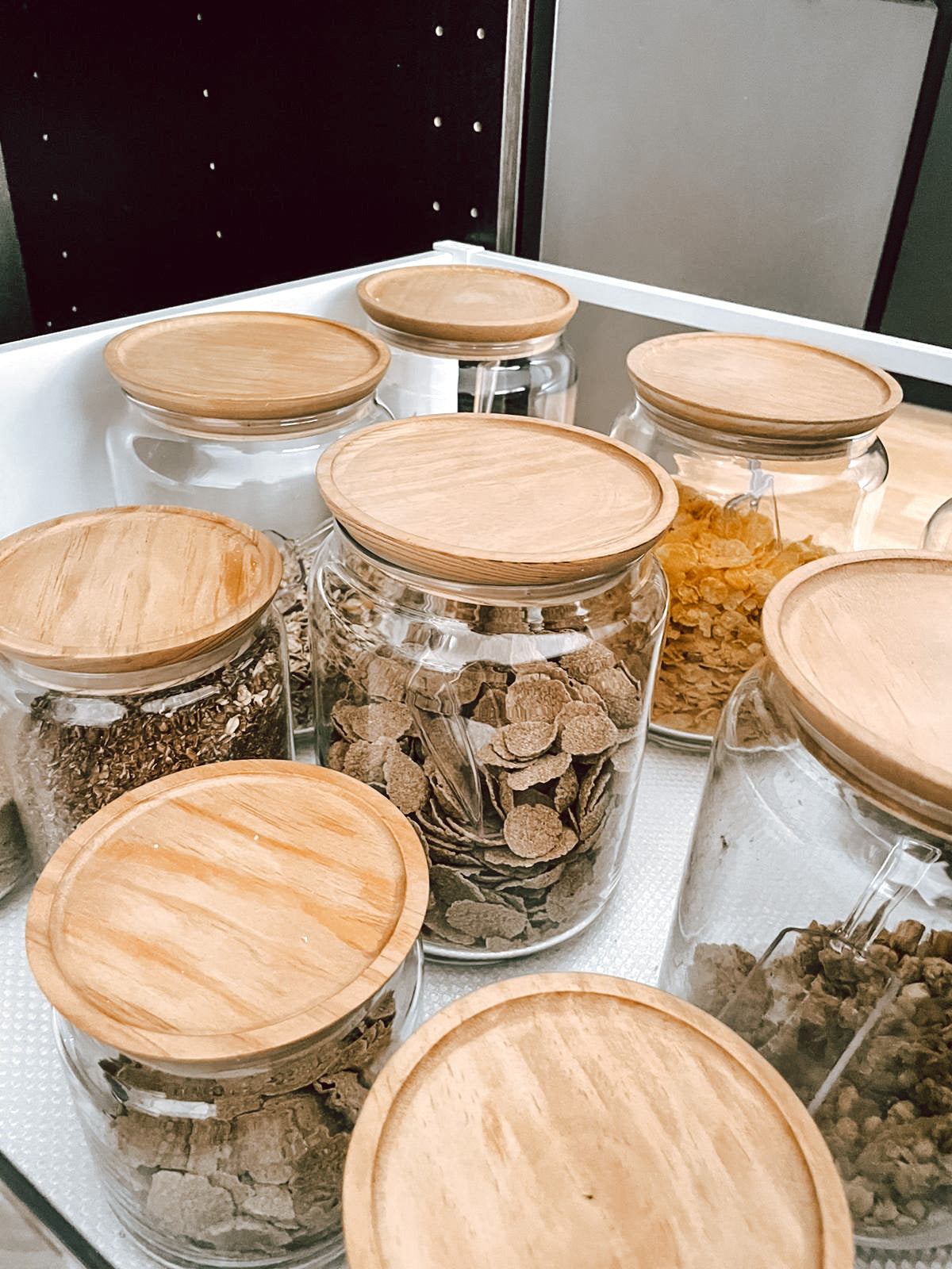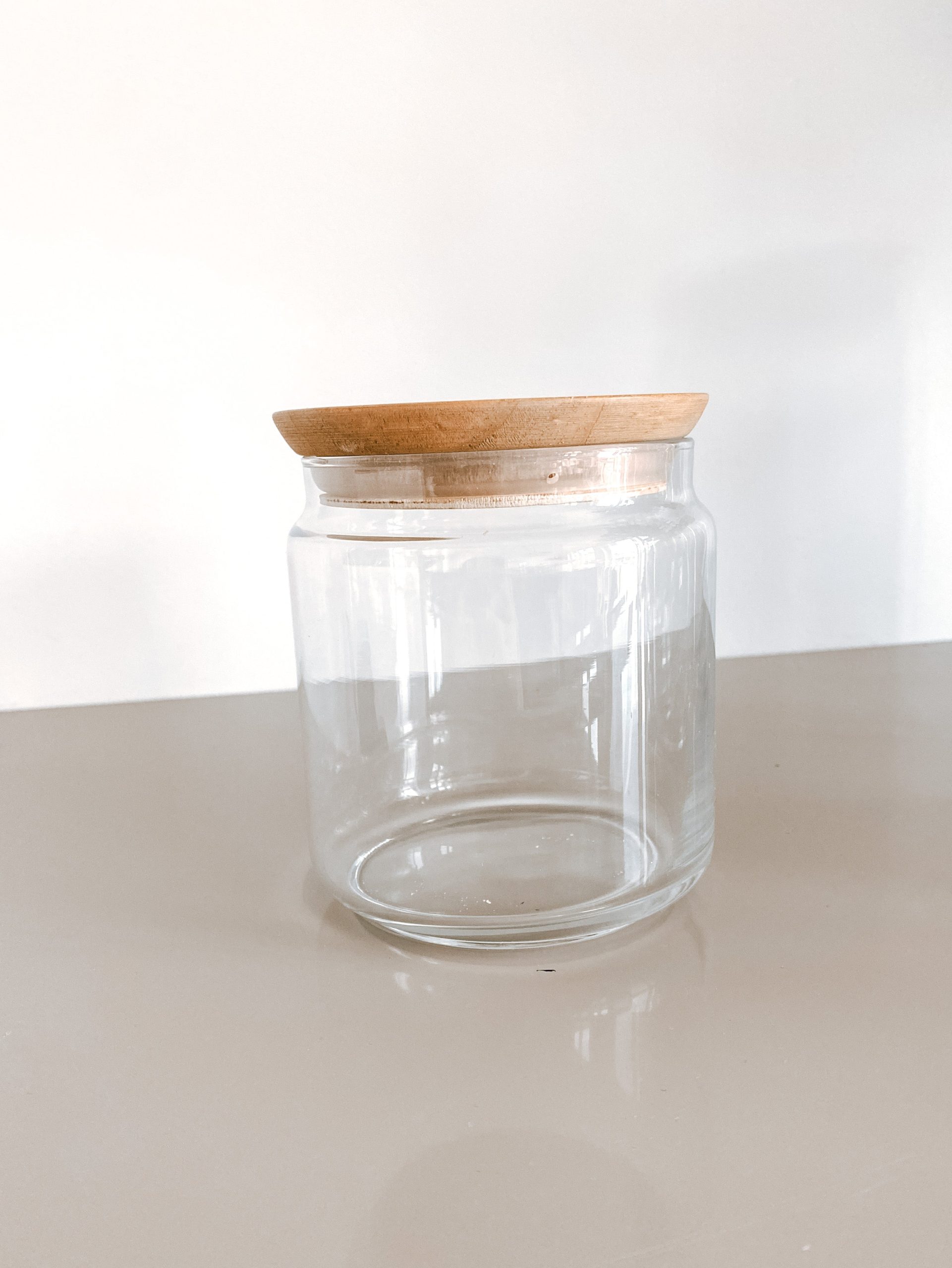 | Product Type | Glass storage jar with wooden lid for kitchen organization and food storage |